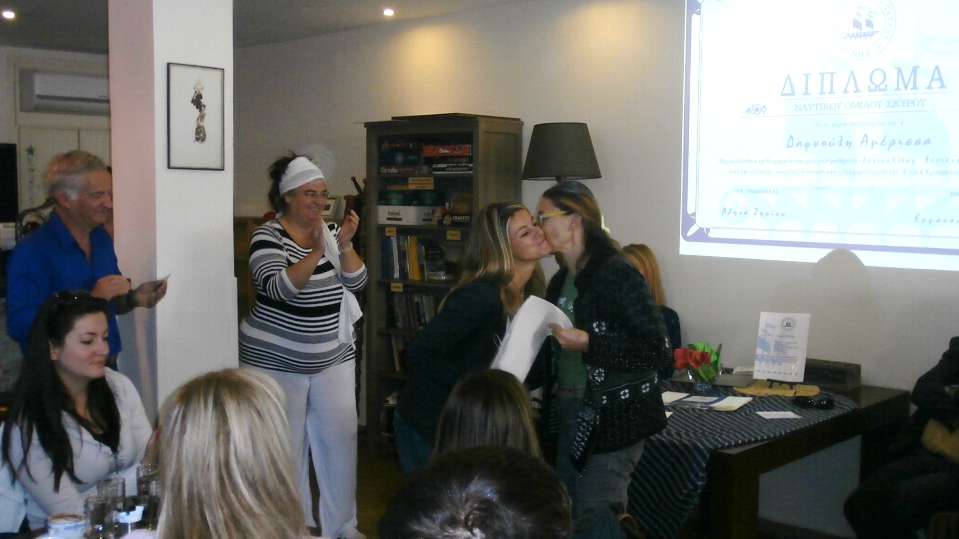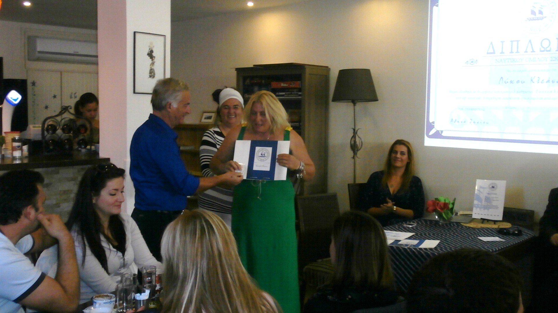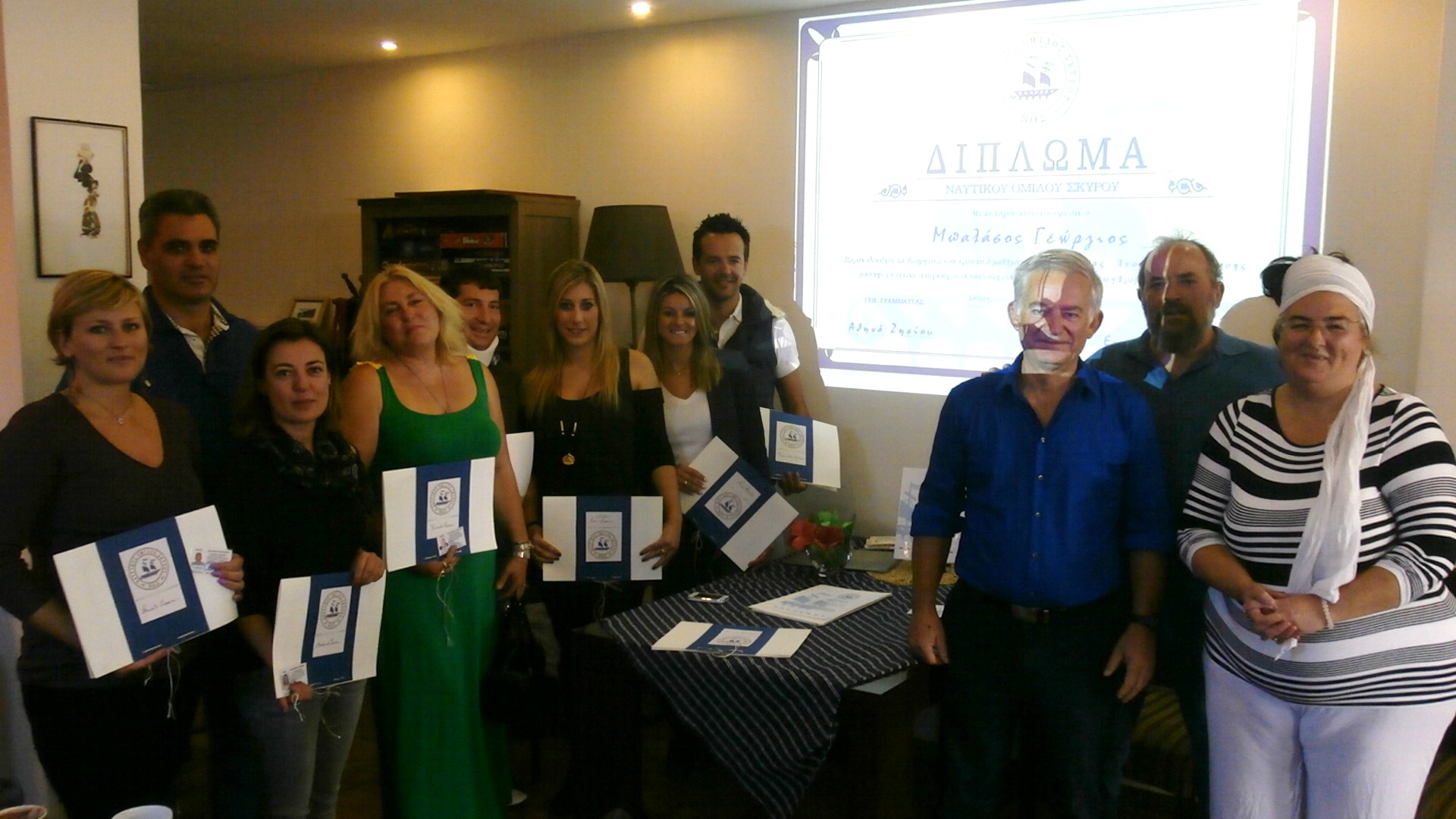 Η απονομή των πτυχίων ιστιοπλοΐας για τις δύο πρώτες σειρές ιστιοπλόων του Ναυτικού Ομίλου Σκύρου έγινε τον Οκτώβριο του 2013 στο καφέ ΄΄ΟΙΝΩ΄΄.